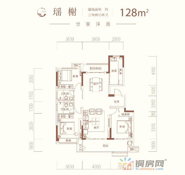 3室2厅2卫 128㎡