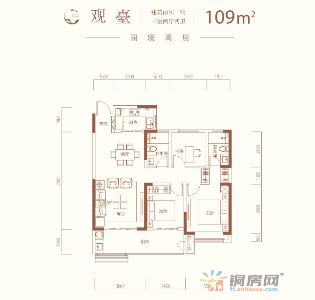 3室2厅2卫 109㎡