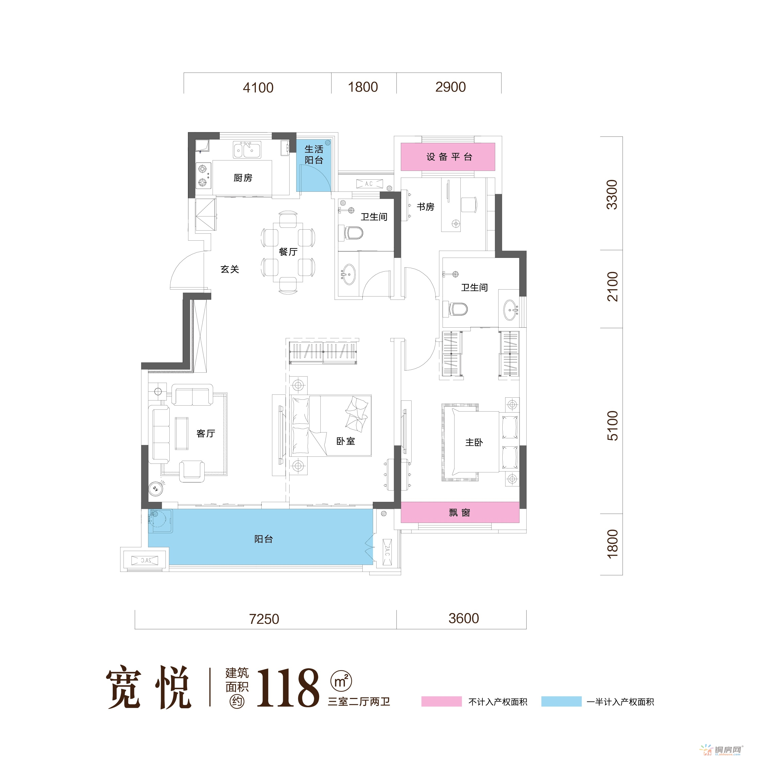 3室2厅2卫 118㎡